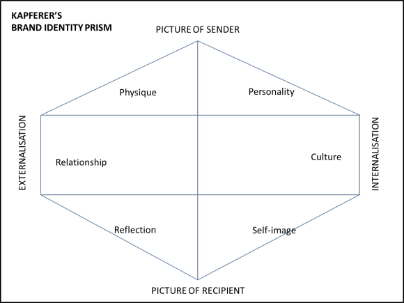 To help illustrate brand identity with a more holistic view of a brand, an internationally recognized corporate branding specialist named Jean-Noel Kapferer created a model he called the "Brand Identity Prism." The Brand Identity Prism illustrates six aspects of brand identity: physique, personality, culture, relationship, reflection, and self-image.